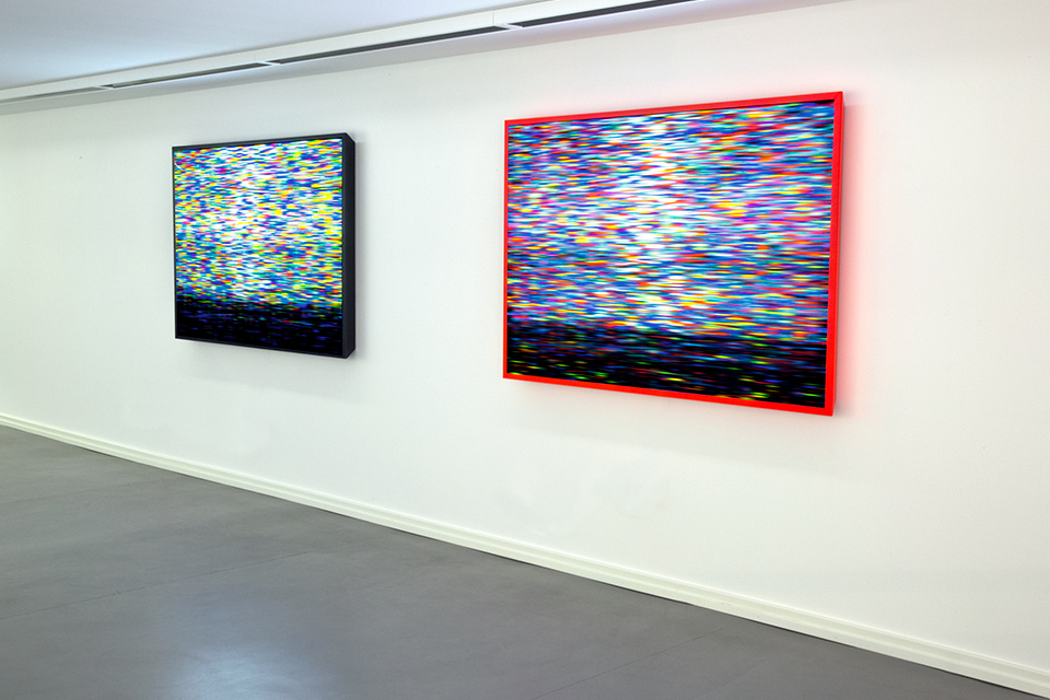 Deutscher Aktienindex 30+1, 2010, duraclear transparency in LED lightbox, 105 x 157.5 cm (left) / Dow Jones Industrial 30+1, 2010, duraclear transparency in LED lightbox, 105 x 157.5 cm (right)